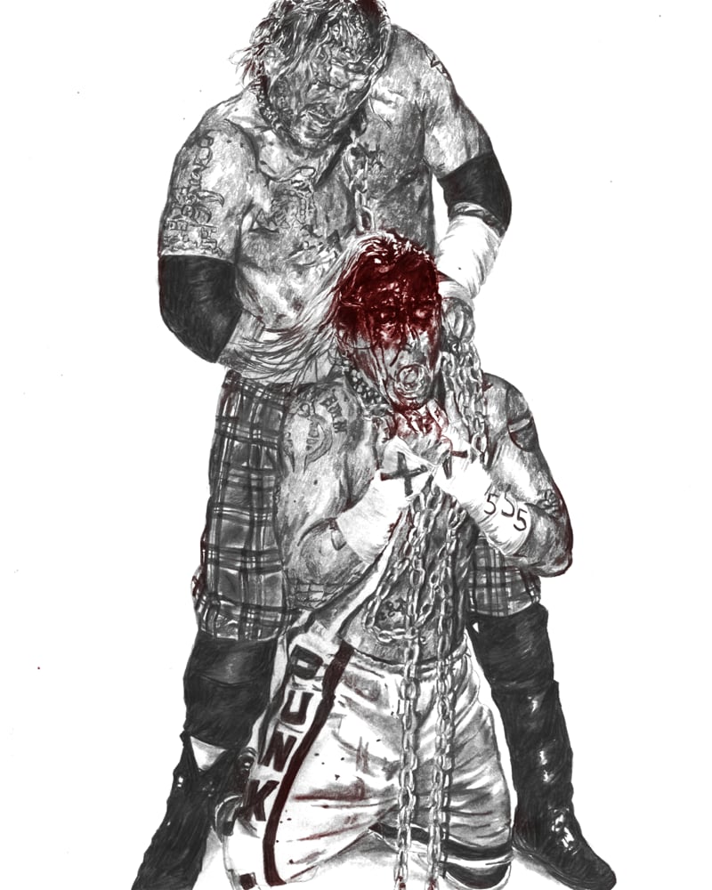 11x17 Matte Print of an all-graphite drawing. Features Raven & CM Punk!